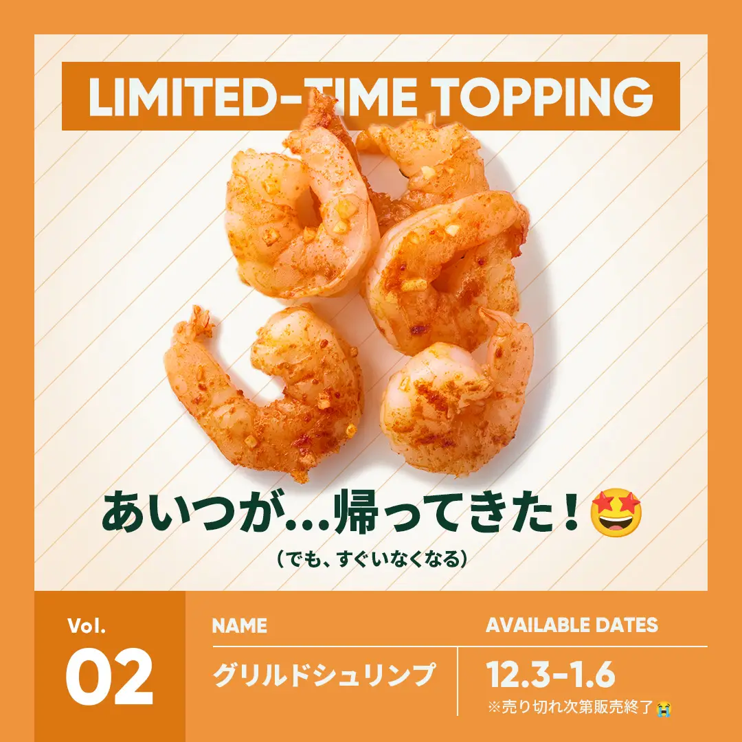 お知らせ2025-12-02【限定トッピング第2弾】グリルドシュリンプ登場🦐