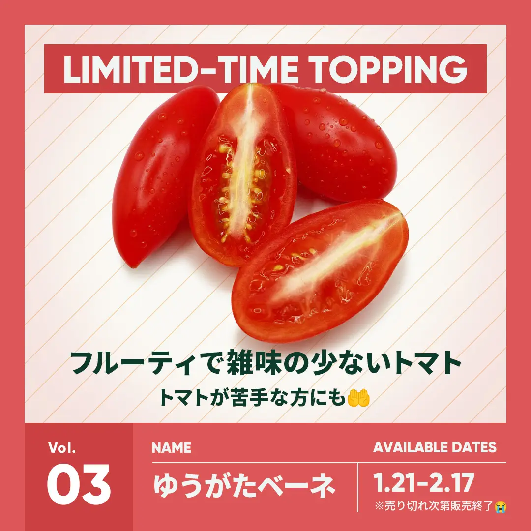 お知らせ2026-01-20【限定トッピング第3弾】ゆうがたベーネ登場🍅